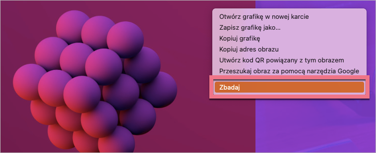 3a. ID wybranego elementu możesz też pobrać z opublikowanego landing page’a. Kliknij w niego prawym przyciskiem myszy i wybierz Zbadaj.