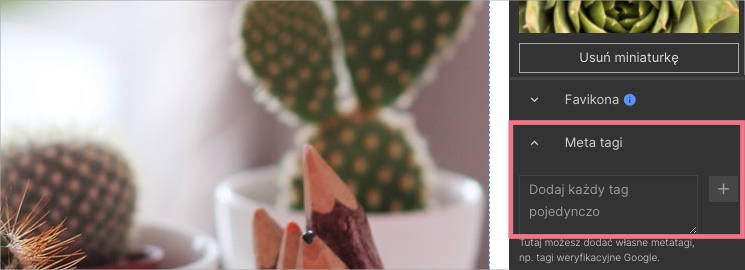 4. W przypadku Twittera w sekcji Meta tagi dodaj jeszcze poniższy meta tag:
