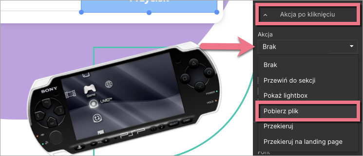 Istnieją dwa proste sposoby dostępne w naszym edytorze, które pozwalają na udostępnienie pliku do ściągnięcia osobom odwiedzającym dany landing page, bez potrzeby korzystania z jakichkolwiek innych zewnętrznych narzędzi.