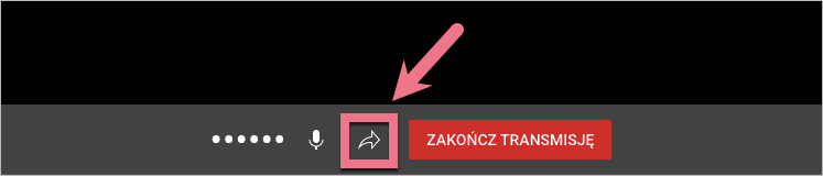 Podczas prowadzenia transmisji możesz pobrać link do niej, klikając ikonę udostępniania: