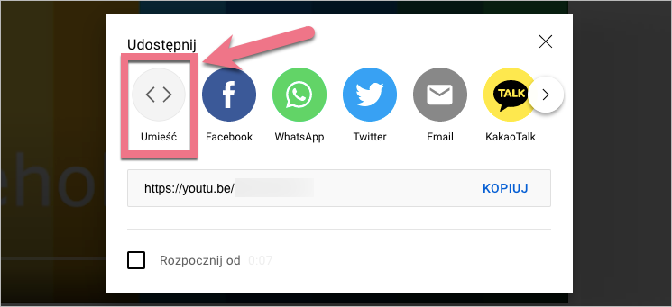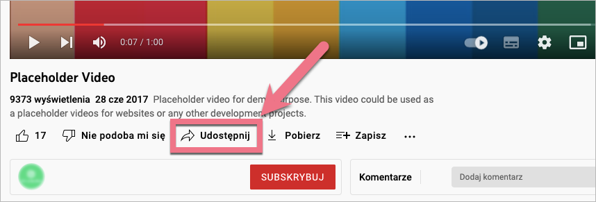 Kliknij przycisk Udostępnij, który znajdziesz pod filmem.
