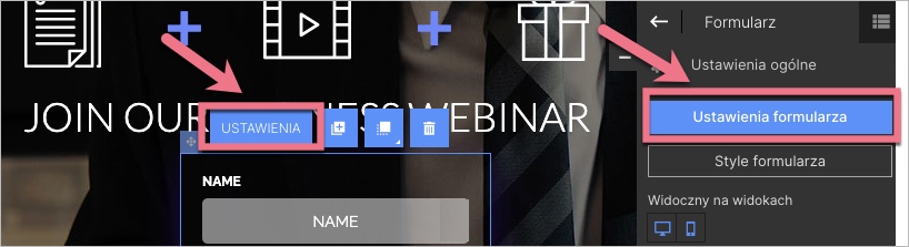 2. Kliknij formularz i przejdź do jego Ustawień.