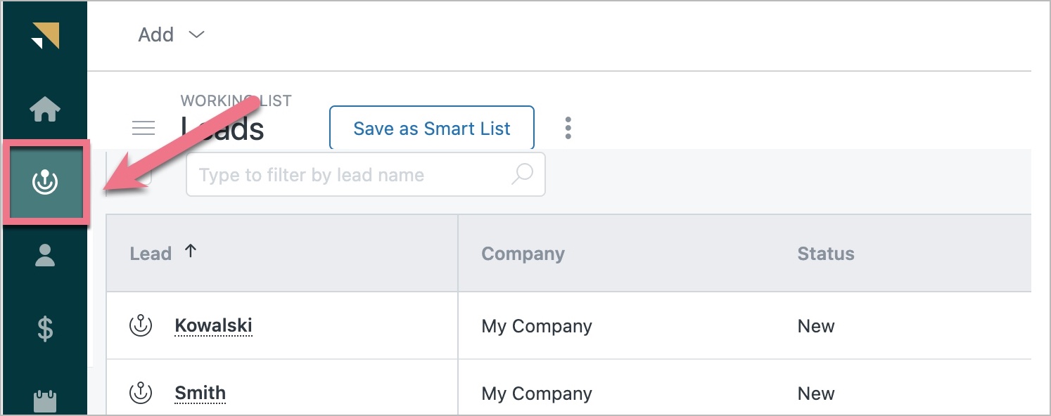 Leady przesłane do Zendesk Sell znajdziesz w zakładce Leads.