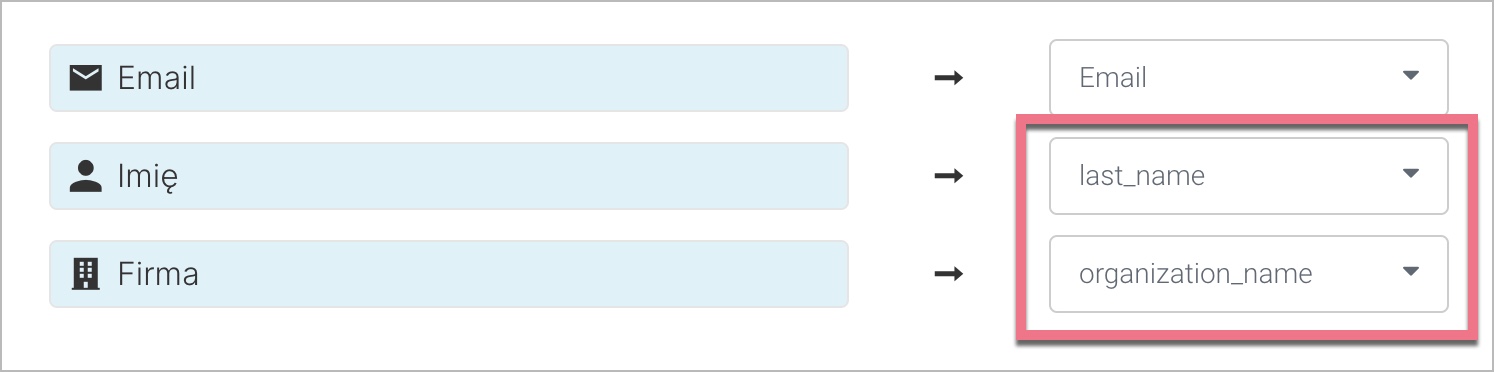 6. Ta integracja wymaga połączenia dwóch pól: last_name oraz organization_name. Możesz oczywiście połączyć także inne, dowolne pola.