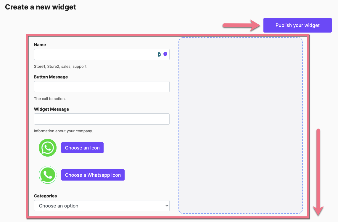 3. Na stronie Create a new widget wypełnij wymagane pola i pola edycji wyglądu (więcej pól znajdziesz po zeskrolowaniu w dół), po czym kliknij Publish your widget.