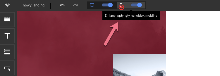 2. Po wprowadzeniu większych zmian w trybie desktopowym może wyświetlić się czerwona kropka obok ikony widoku mobilnego. Oznacza to, że widok mobilny wymaga dostosowania.
