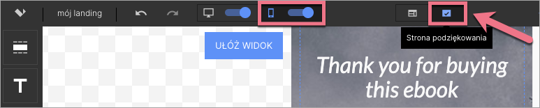 Jeżeli widok mobilny nie jest włączony, na górnym pasku edytora odszukaj ikonę smartfona i za pomocą suwaka włącz widok mobilny.