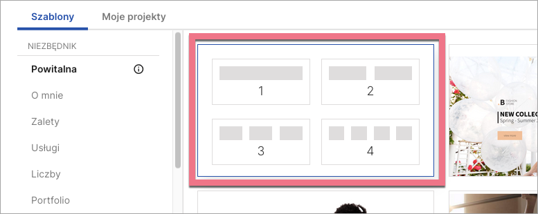 2b. Wybierz sekcję z jedną, dwoma, trzema lub czterema kolumnami.
