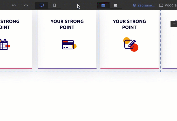 3. Elementy w sekcji z podziałem na kolumny są uporządkowane. W widoku mobilnym kolumny układają się jedna nad drugą, od lewej do prawej w pionie. Możesz je dowolnie przesuwać – nie wpływa to na ustawienie kolumn w widoku desktopowym.