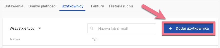 3. Uzupełnij wymagane dane: wpisz nazwę oraz e-mail i wybierz typ użytkownika. Następnie nadaj użytkownikowi hasło. Potwierdź, klikając Dodaj użytkownika.