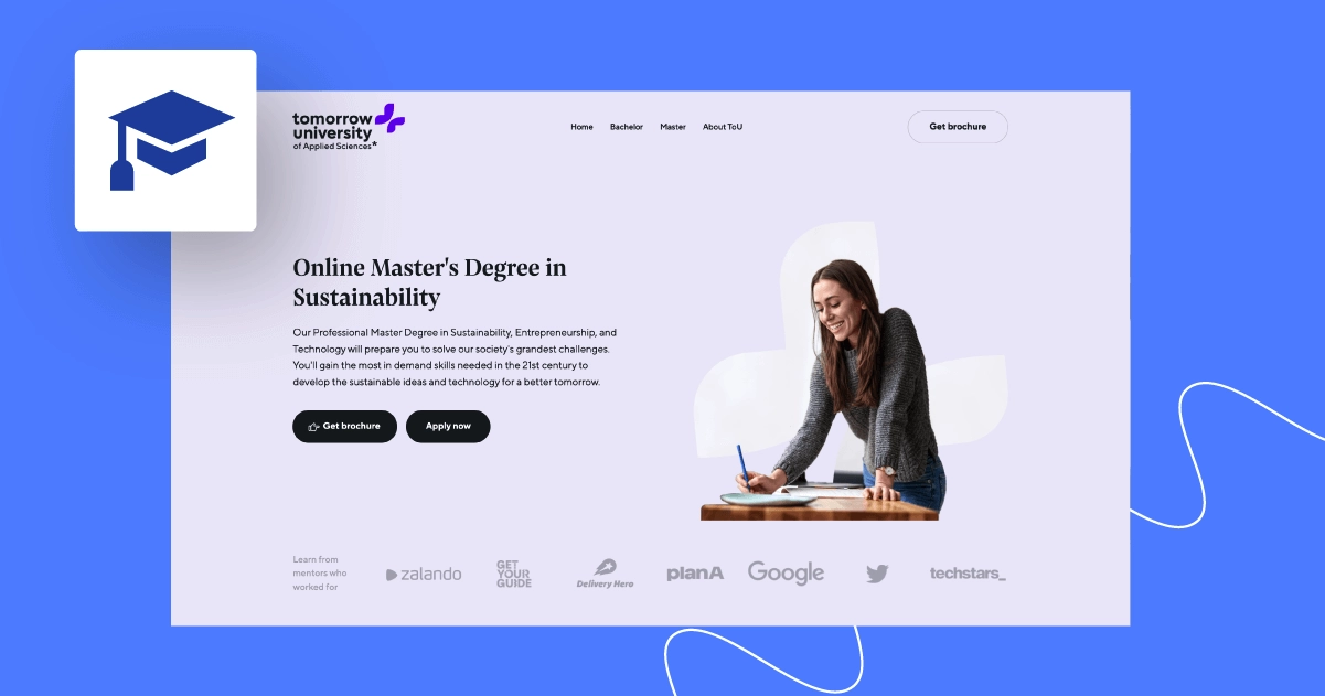 O objetivo de obter um diploma é colocar os formandos em um caminho para um futuro melhor, um emprego bem remunerado e uma carreira estável. Quando ex-alunos fazem uso de seus diplomas, apresente isso em sua landing page de ensino superior.