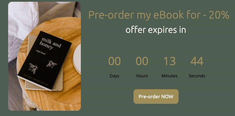Uma técnica eficiente é despertar o interesse com um cronômetro de contagem regressiva. Ele faz a contagem regressiva em segundos, minutos, horas e dias para qualquer data que você definir. Aos olhos dos clientes em potencial, isso faz com que o momento do lançamento seja mais distante no tempo, de modo que, se eles considerarem seu produto ou serviço valioso, o desejo por ele se intensificará constantemente. Você pode então atender às necessidades deles oferecendo uma opção de pré-encomenda. É sempre bom combiná-lo com um desconto especial.