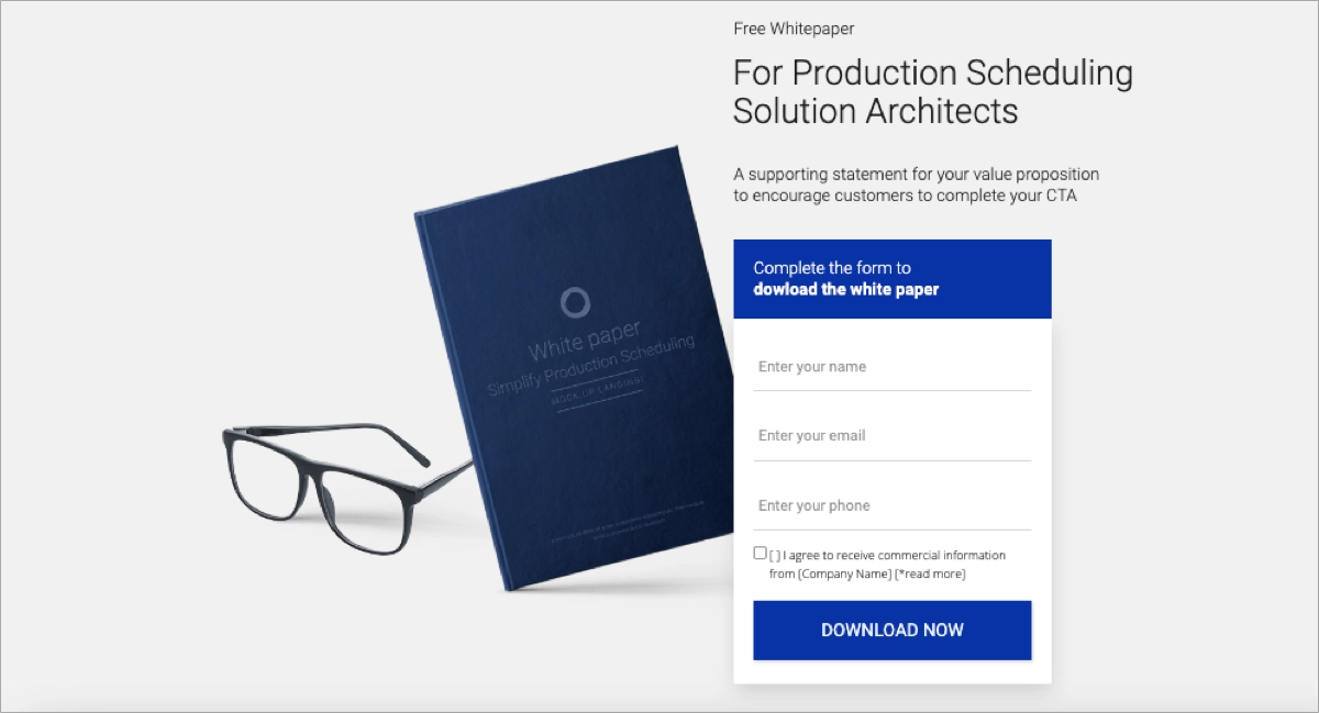 • Clear content summary that helps visitors assess the white paper’s value instantly,