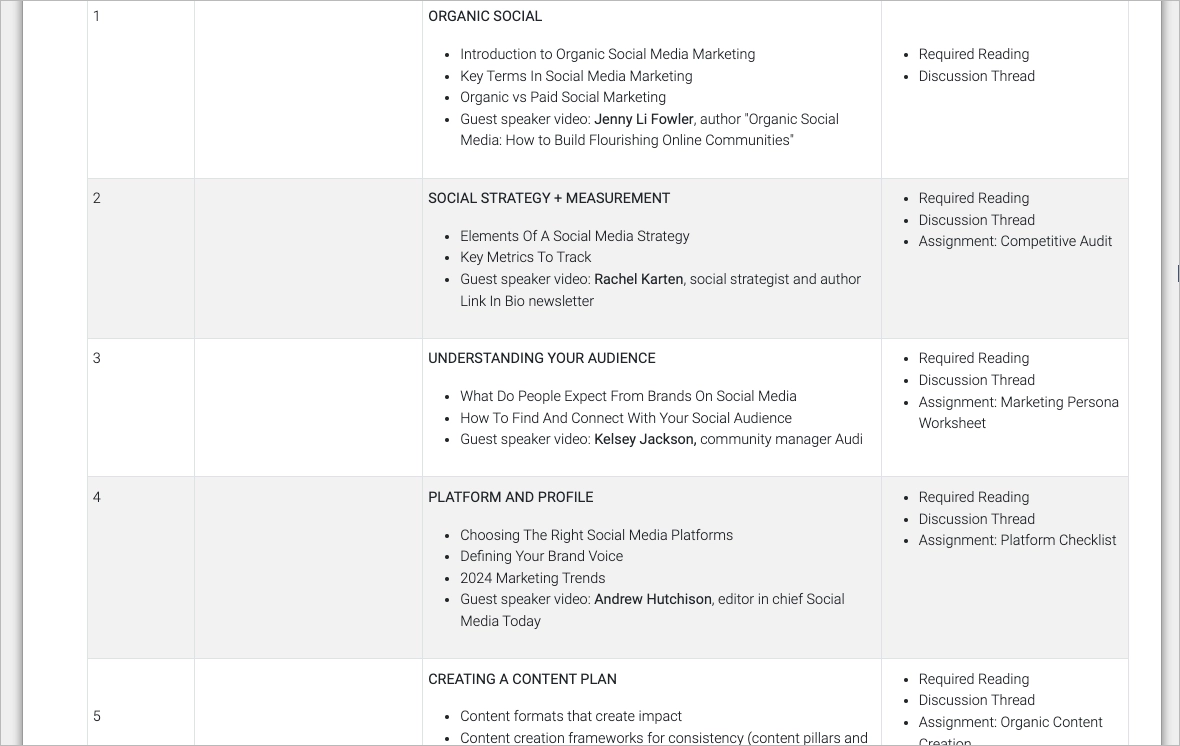 Some courses focus on specific platforms or tools, while others provide a broader overview of digital marketing through social media. Topics often include campaign planning, writing for social media, using analytics, and setting up landing pages to support conversions.